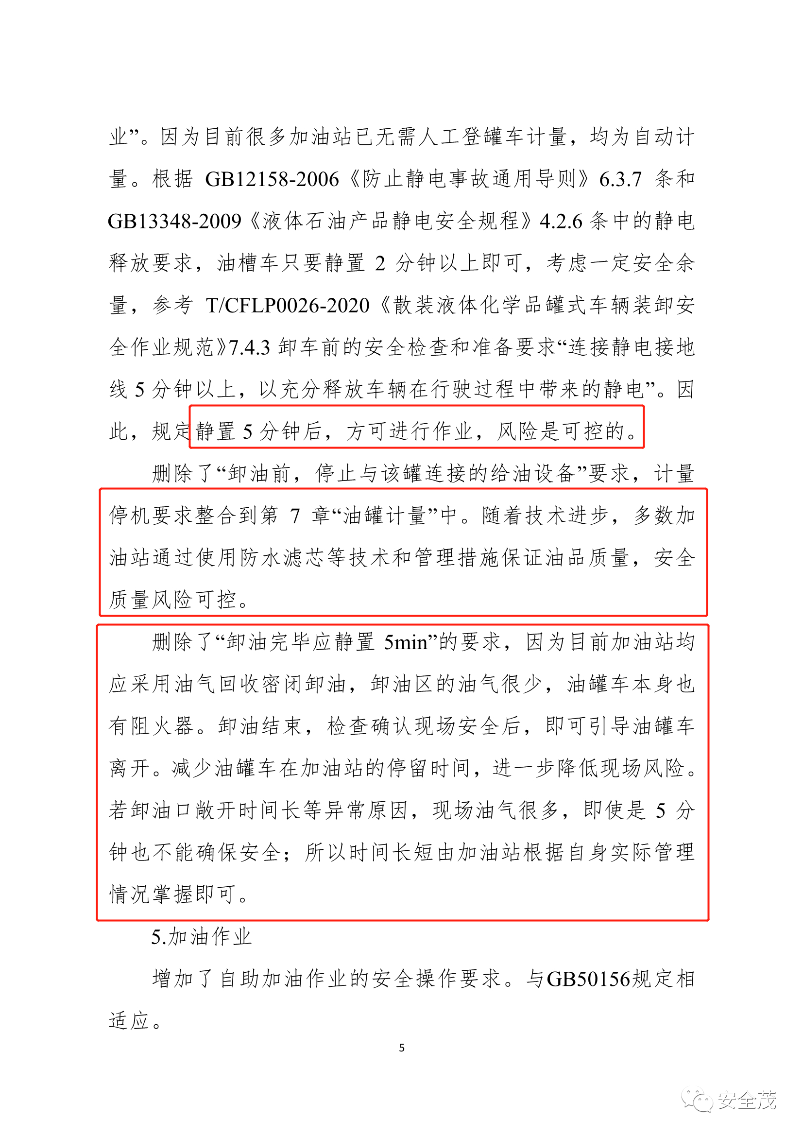 7、刪除了“卸油完畢應(yīng)靜置5min”的要求。