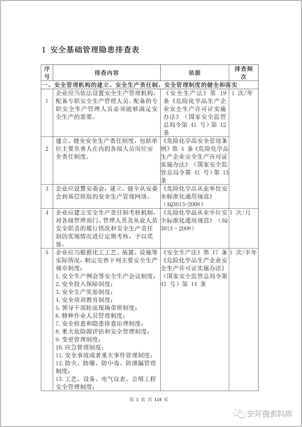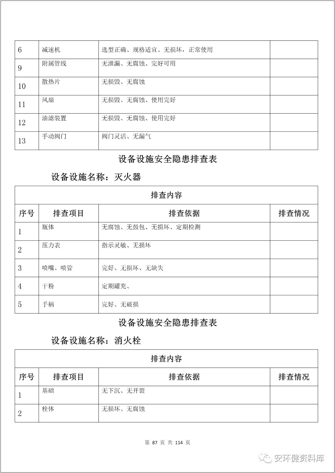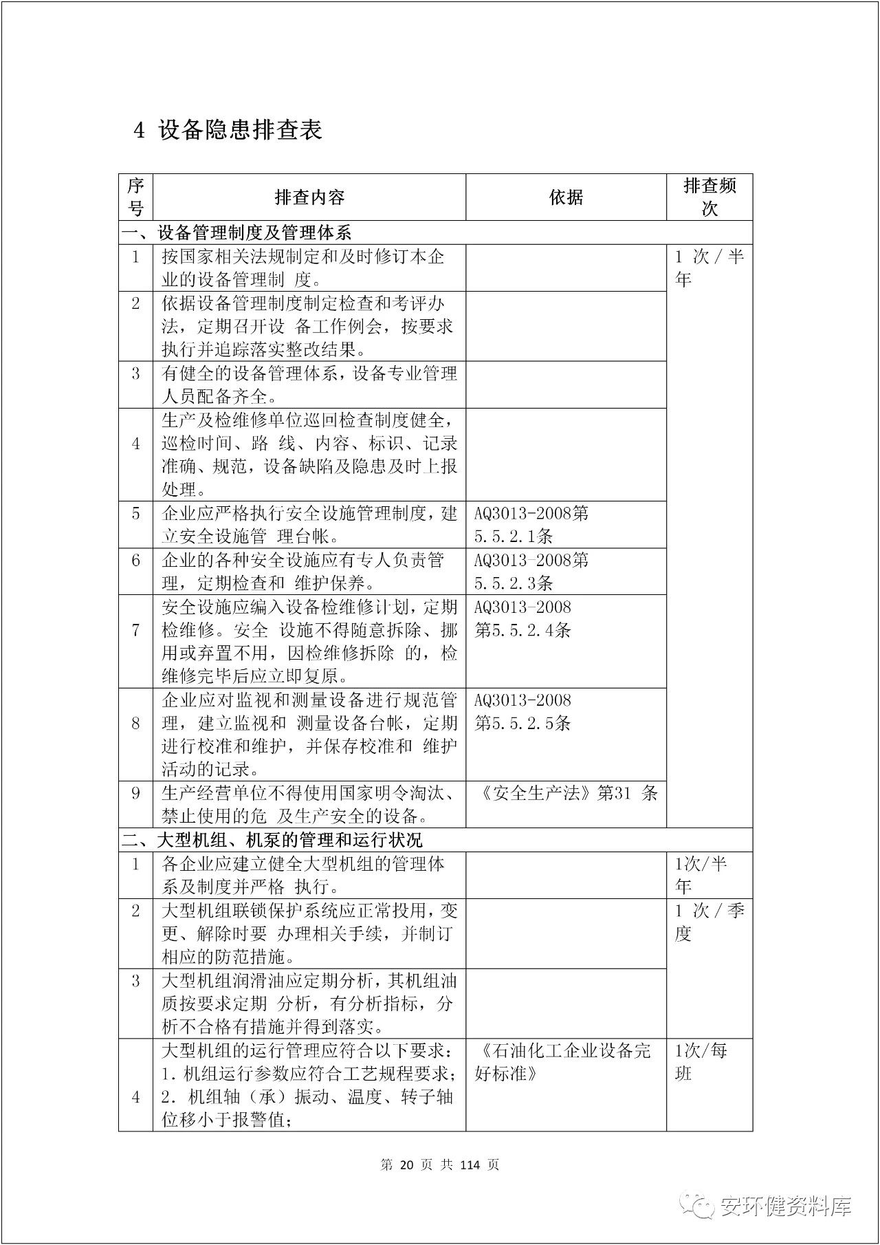 【尖貨】100多頁隱患排查表,附標準依據(word版)