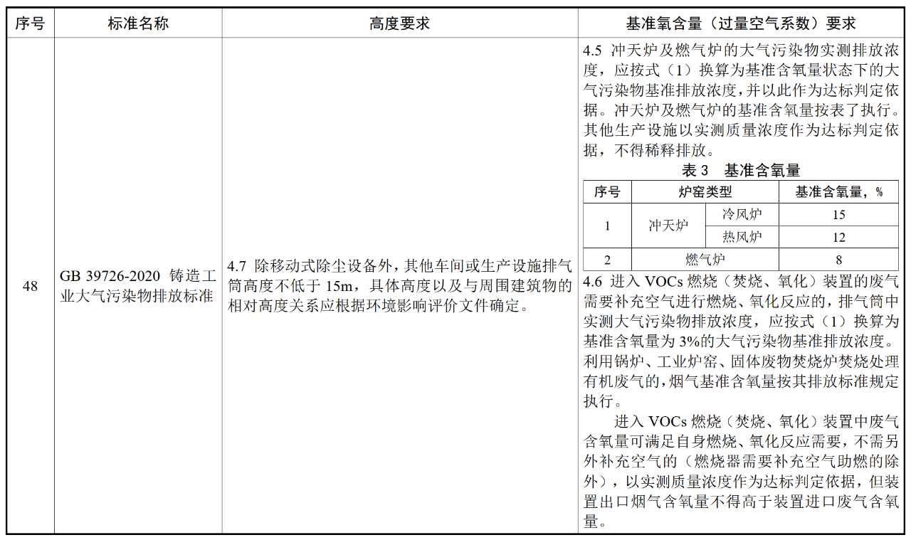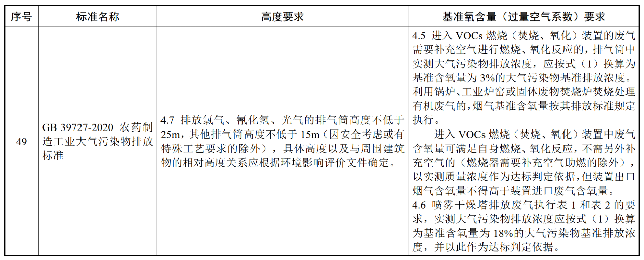 各行業大氣污染物(含VOCs)排氣筒高度及基準氧含量要求