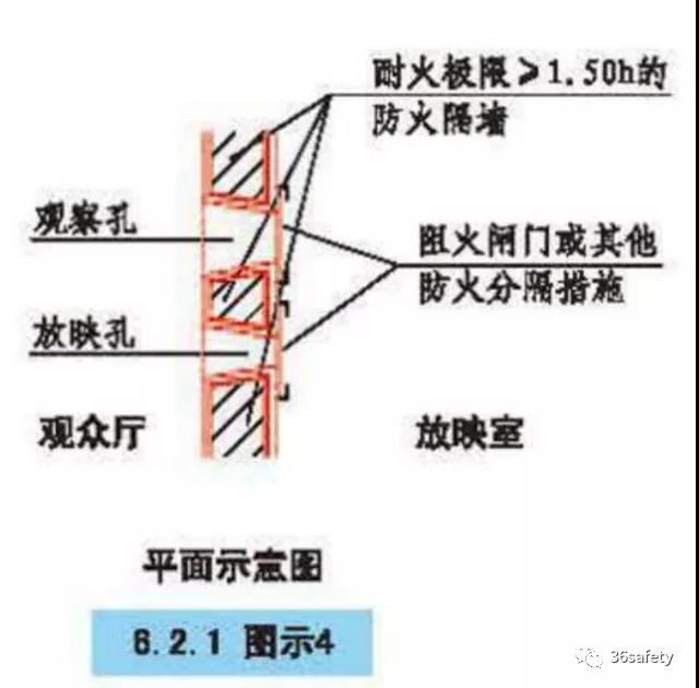 電影放映室、卷片室應采用耐火極限不低于1.50h的防火隔墻與其他部位分隔,觀察孔和放映孔應采取防火分隔措施。