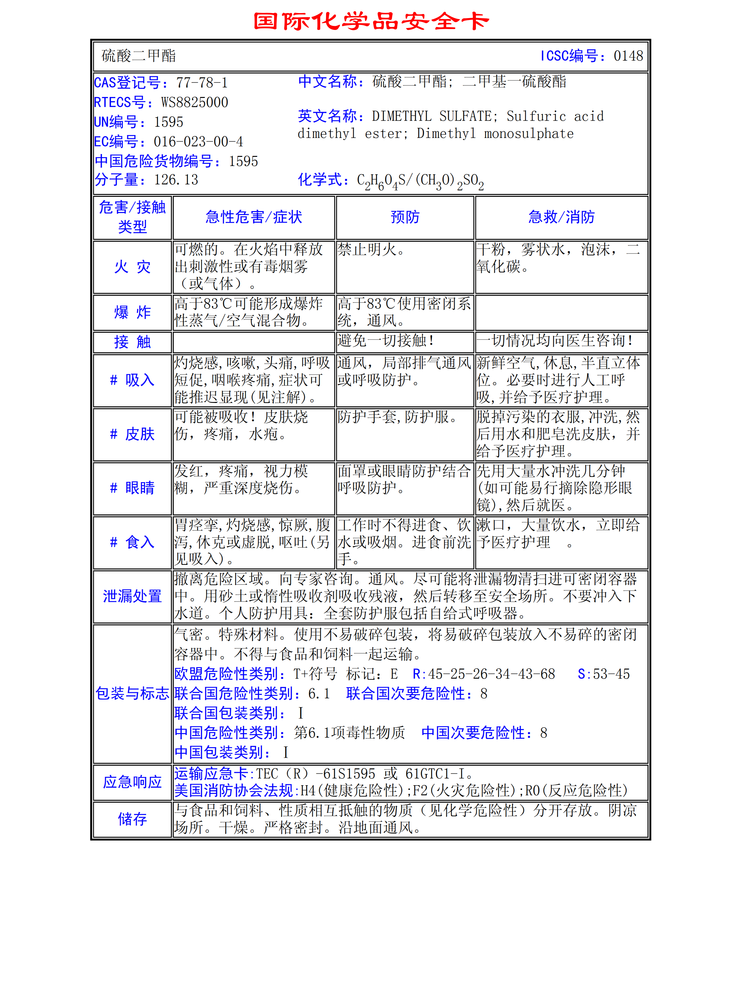 硫酸二甲酯MSDS