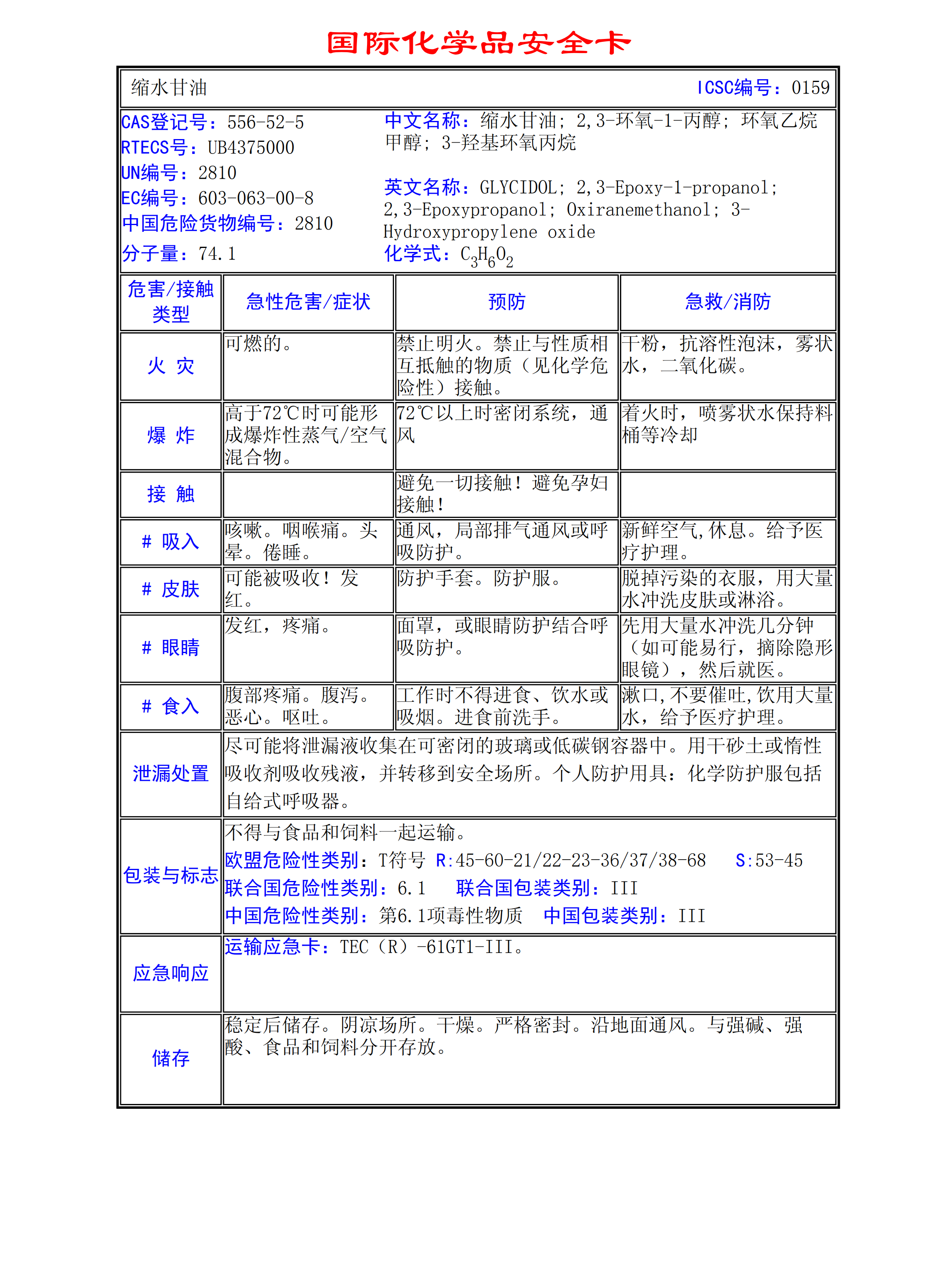 縮水甘油MSDS