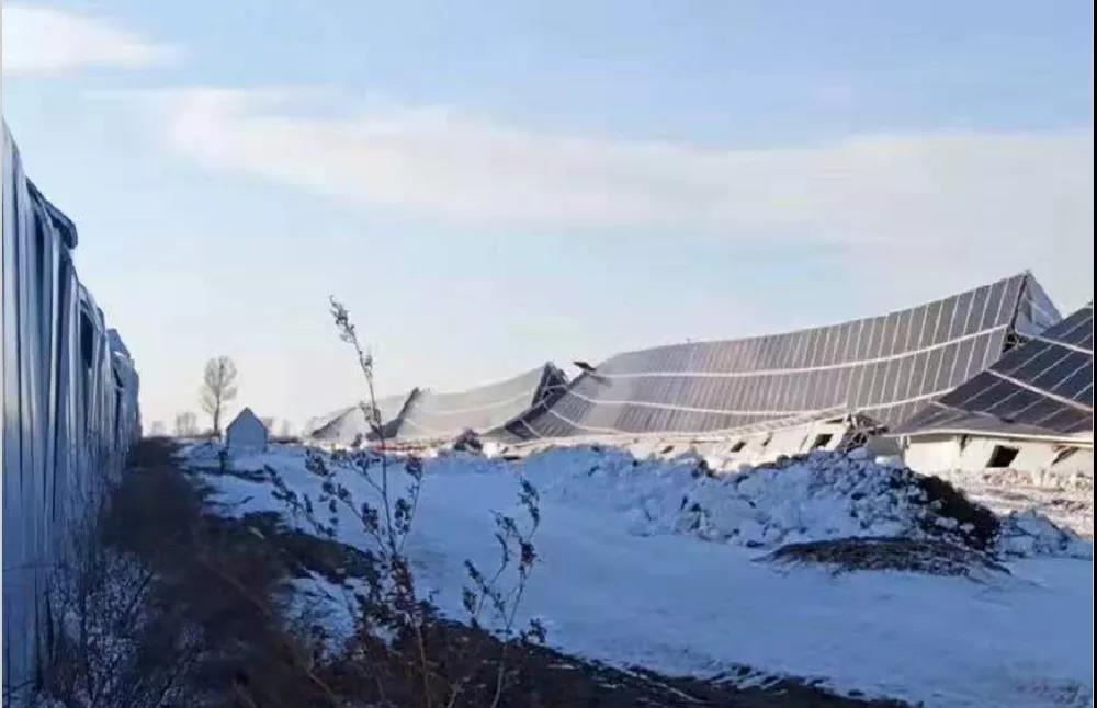 北方某光伏電站大批組件被大雪壓塌,損失慘重