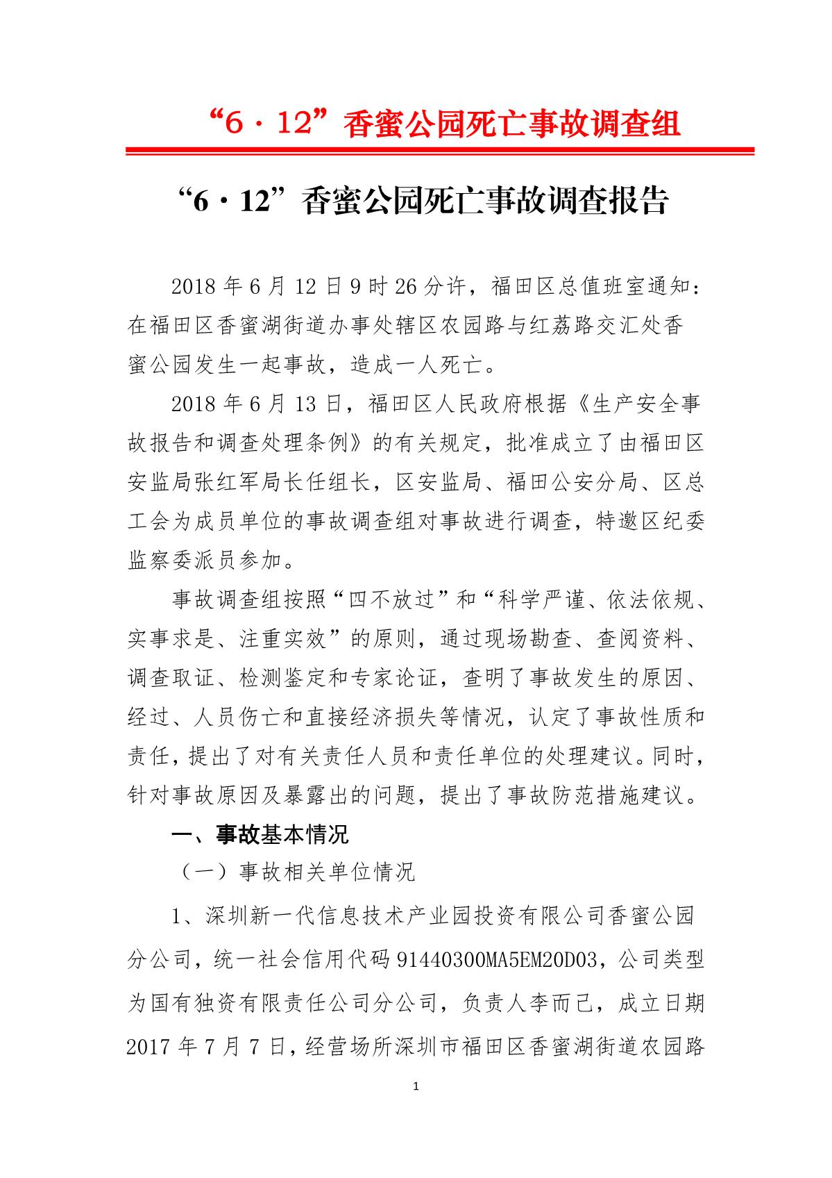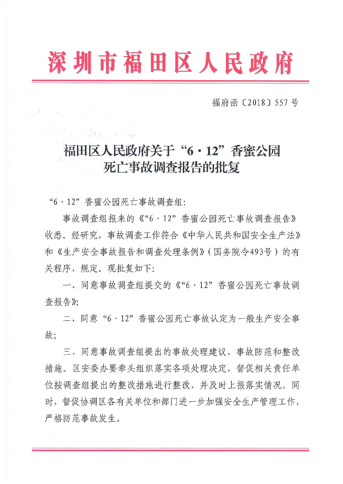 福田區人民政府關于深圳市城市軌道交通6號線二期主體工程6111標“7.05”10kv電力電纜受損事故調查報告