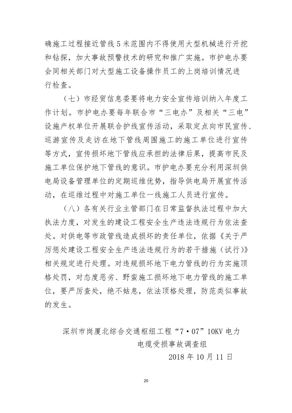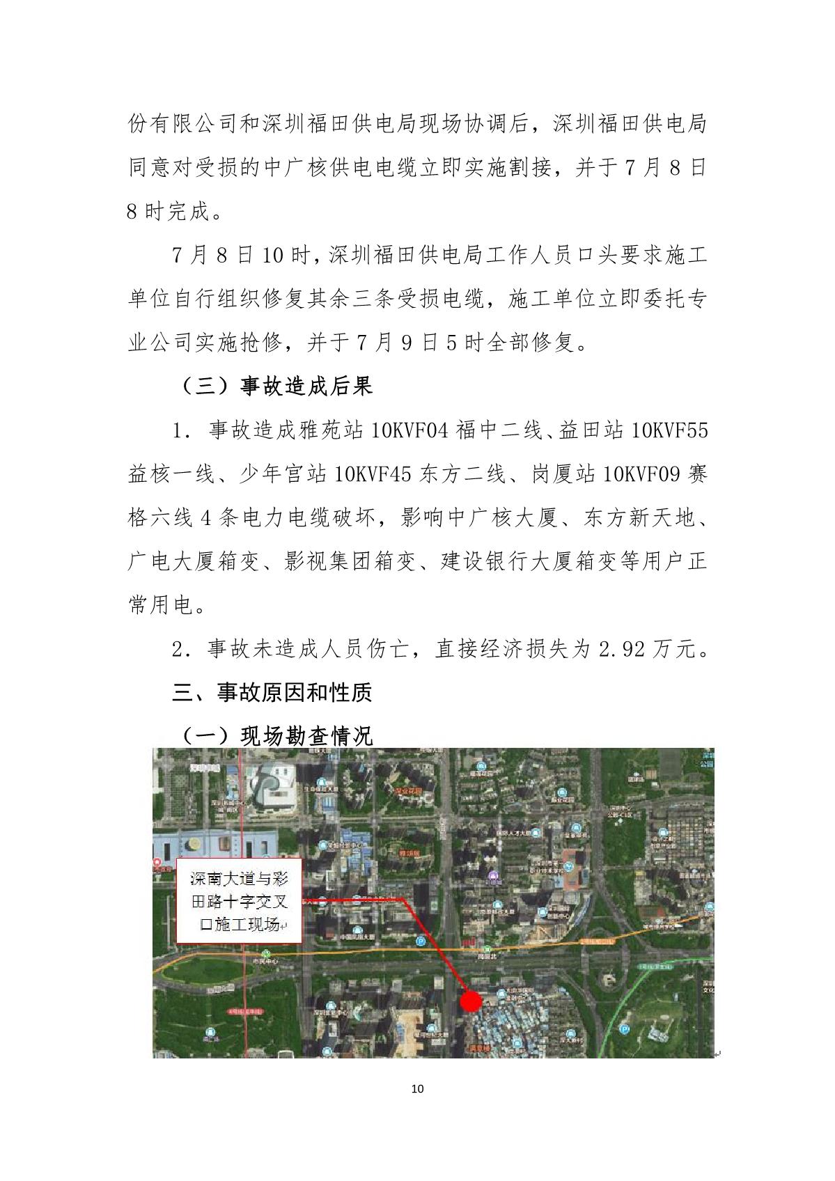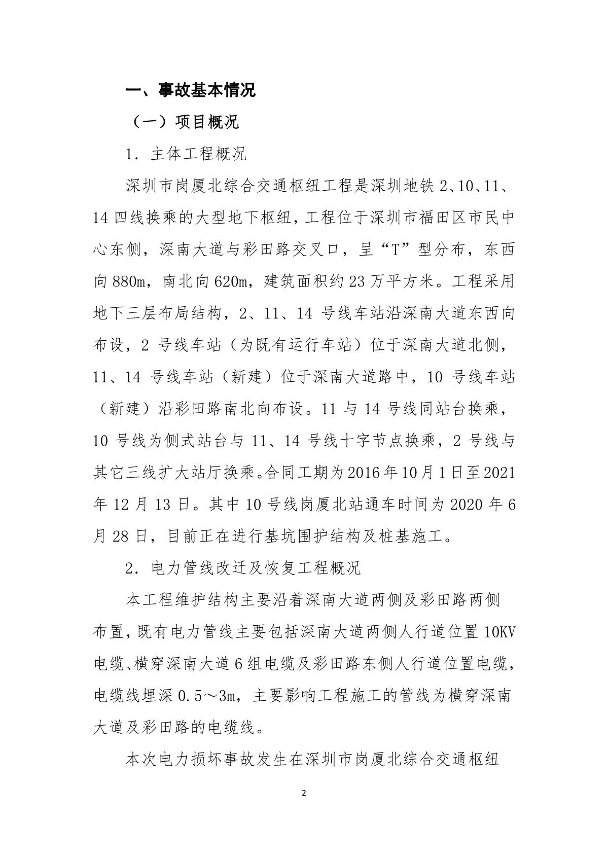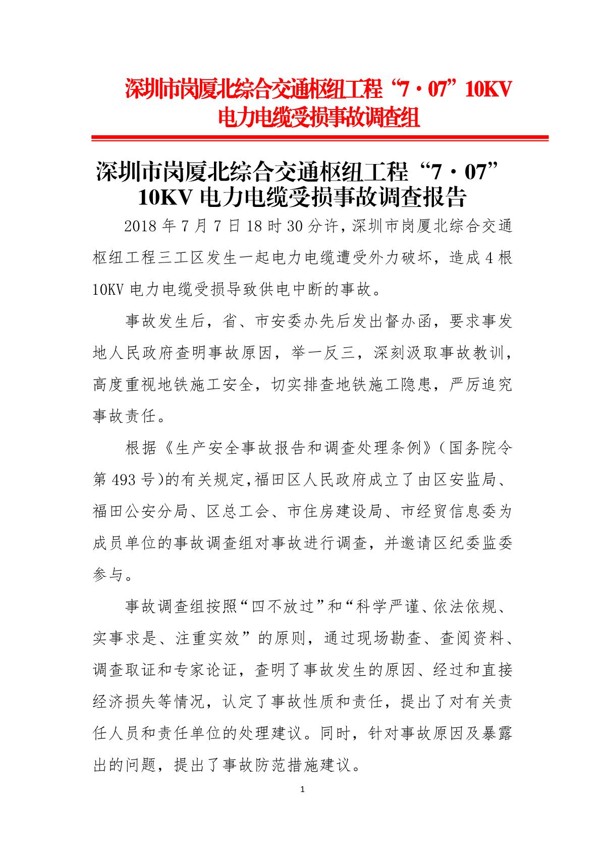 深圳市崗廈北綜合交通樞紐工程“7.07”10kv電力電纜受損事故調(diào)查報告