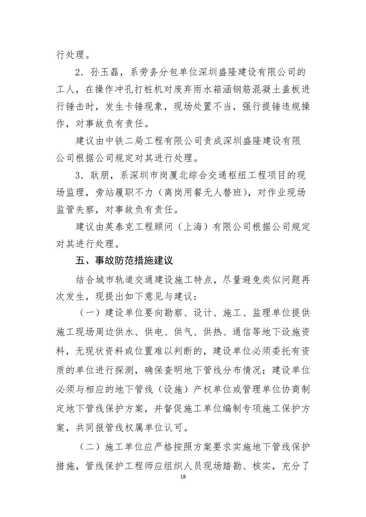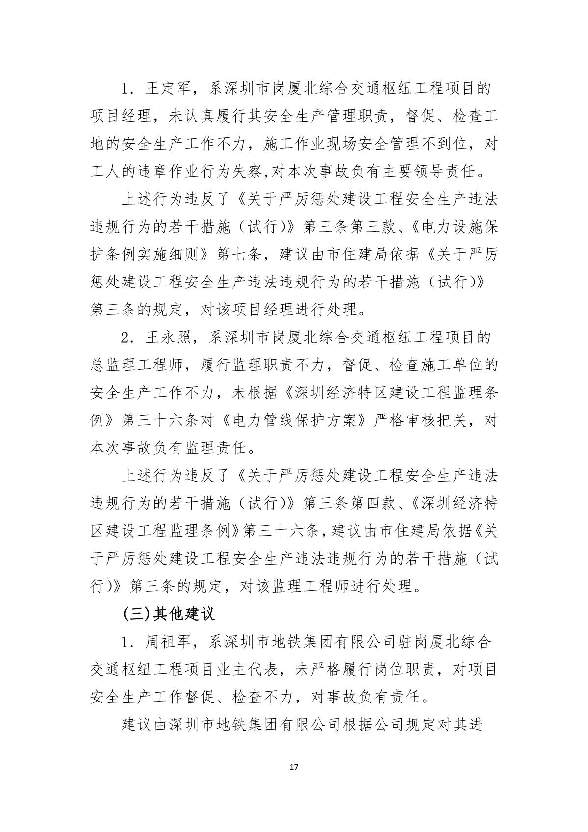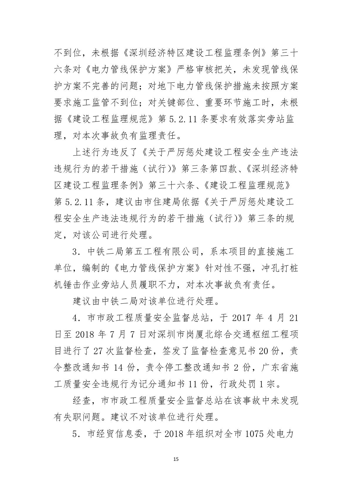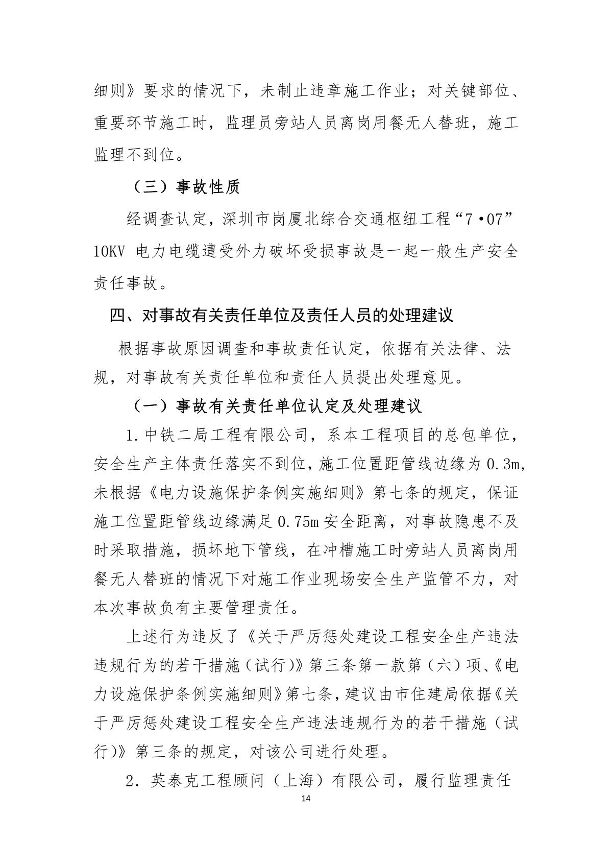 深圳市崗廈北綜合交通樞紐工程“7.07”10kv電力電纜受損事故調(diào)查報告