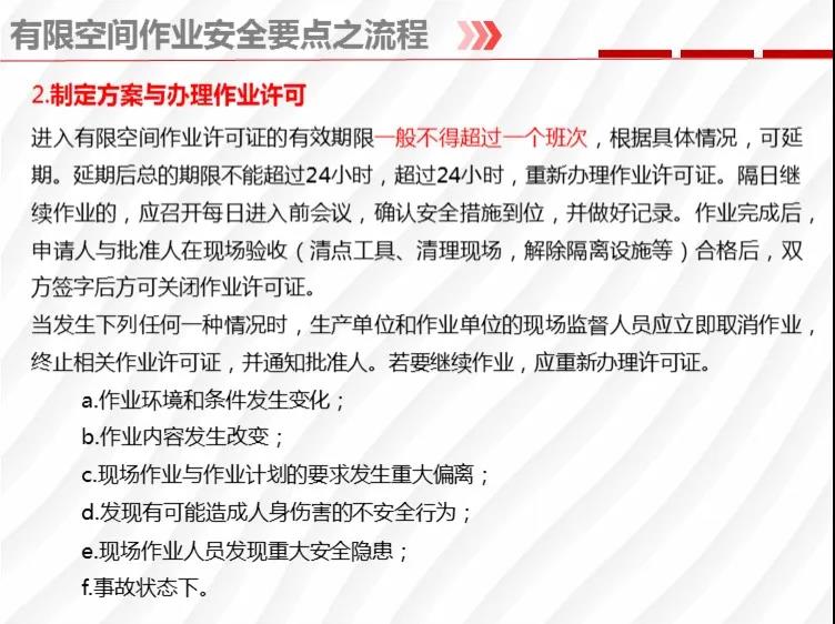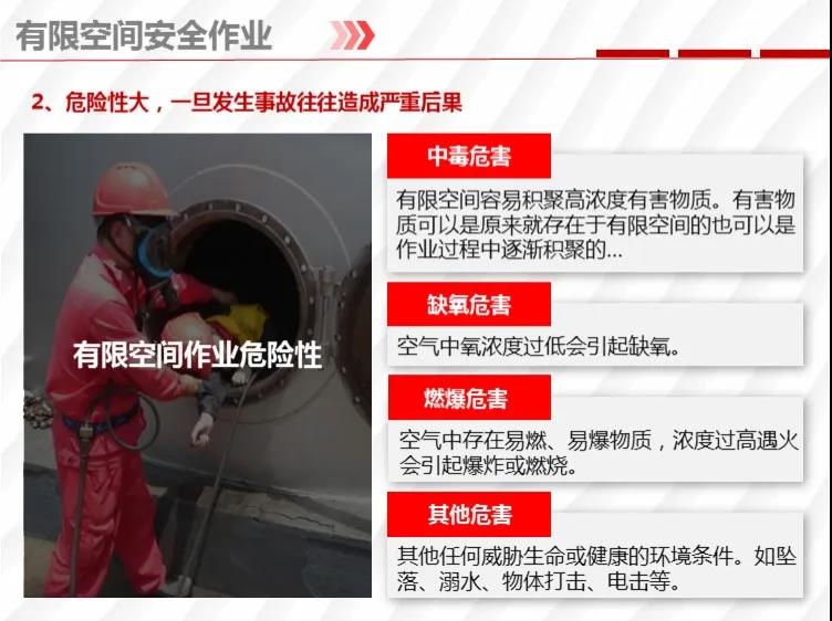 一要立即開展有限空間安全風險排查。春節假期剛過,各類企業集中復工復產,涉及有限空間作業安全的檢維修、調試行為增多,加之氣溫逐漸升高,造成有限空間中有毒有害氣體集聚,安全風險加劇。各地各有關部門要督促涉及有限空間作業的工礦商貿企業以及市政工程、垃圾發電、燃氣、熱力、排水、衛生、環保等重點單位、重點區域、重點場所開展全方位的風險隱患排查。對發現的風險隱患,企業要逐一登記造冊,向負有安全監管職責的部門報告,并按照《有限空間作業安全指導手冊》(應急廳函〔2020〕299號)要求落實各項防范措施。
