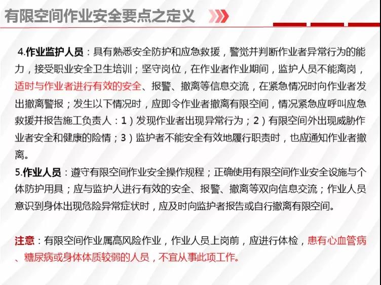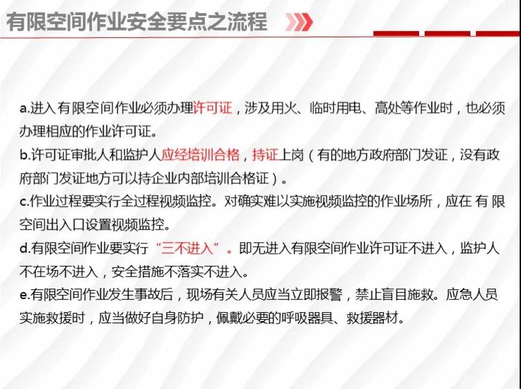 二要嚴格落實有限空間作業安全管理規定。各地各有關部門要督促企業嚴格執行《安徽省有限空間作業安全管理與監督暫行規定》,凡涉及到有限空間作業,做到“五個必須”,即必須嚴格實行作業審批制度;必須做到“先通風、再檢測、后作業”;必須配備個人防中毒窒息等防護裝備,設置安全警示標識;必須對作業人員進行安全培訓;必須制定應急措施,現場配備應急裝備,嚴禁盲目施救。