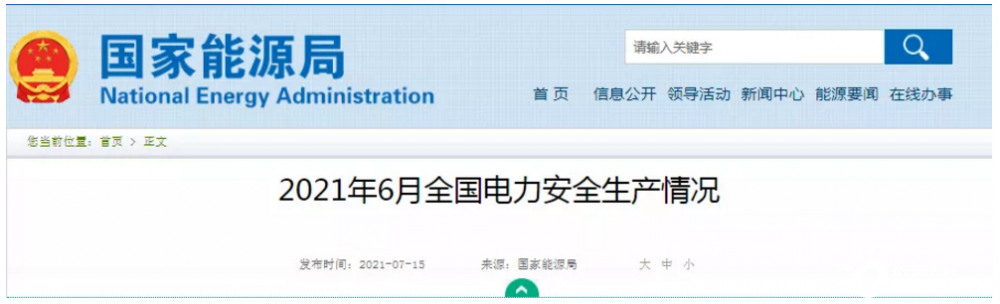2021年6月份,全國(guó)發(fā)生電力人身傷亡事故2起、死亡2人,同比事故起數(shù)減少3起、死亡人數(shù)減少5人。其中,發(fā)生電力生產(chǎn)人身傷亡事故2起、死亡2人,同比事故起數(shù)減少2起、死亡人數(shù)減少4人;未發(fā)生電力建設(shè)人身傷亡事故,同比事故起數(shù)減少1起、死亡人數(shù)減少1人。未發(fā)生電力安全事故,同比持平。未發(fā)生直接經(jīng)濟(jì)損失100萬(wàn)元以上的電力設(shè)備事故,同比持平。發(fā)生2起電力安全事件,同比增加1起。