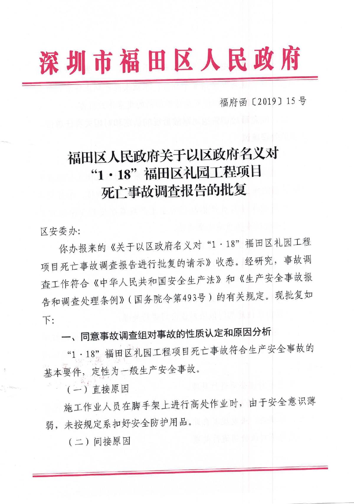 “1.18”福田區禮園工程項目死亡事故調查報告
