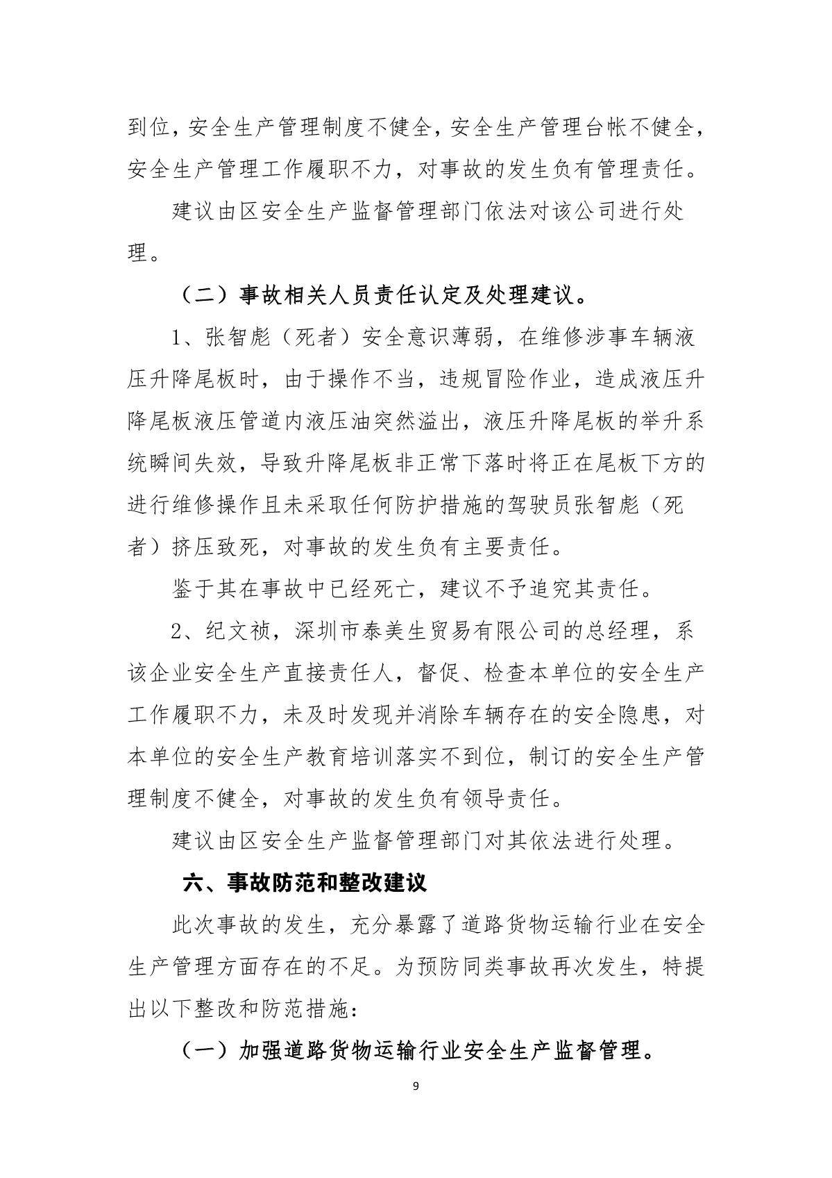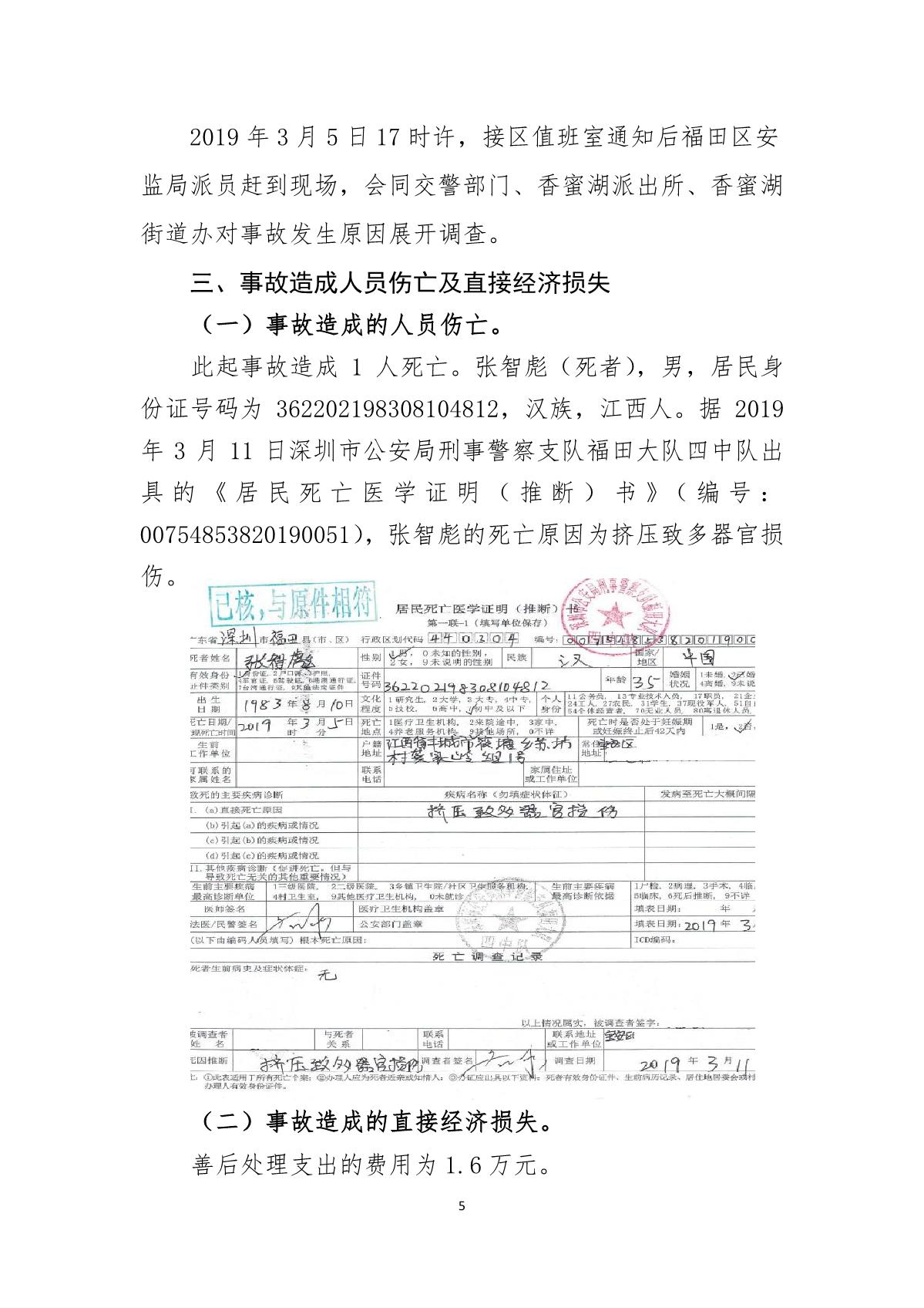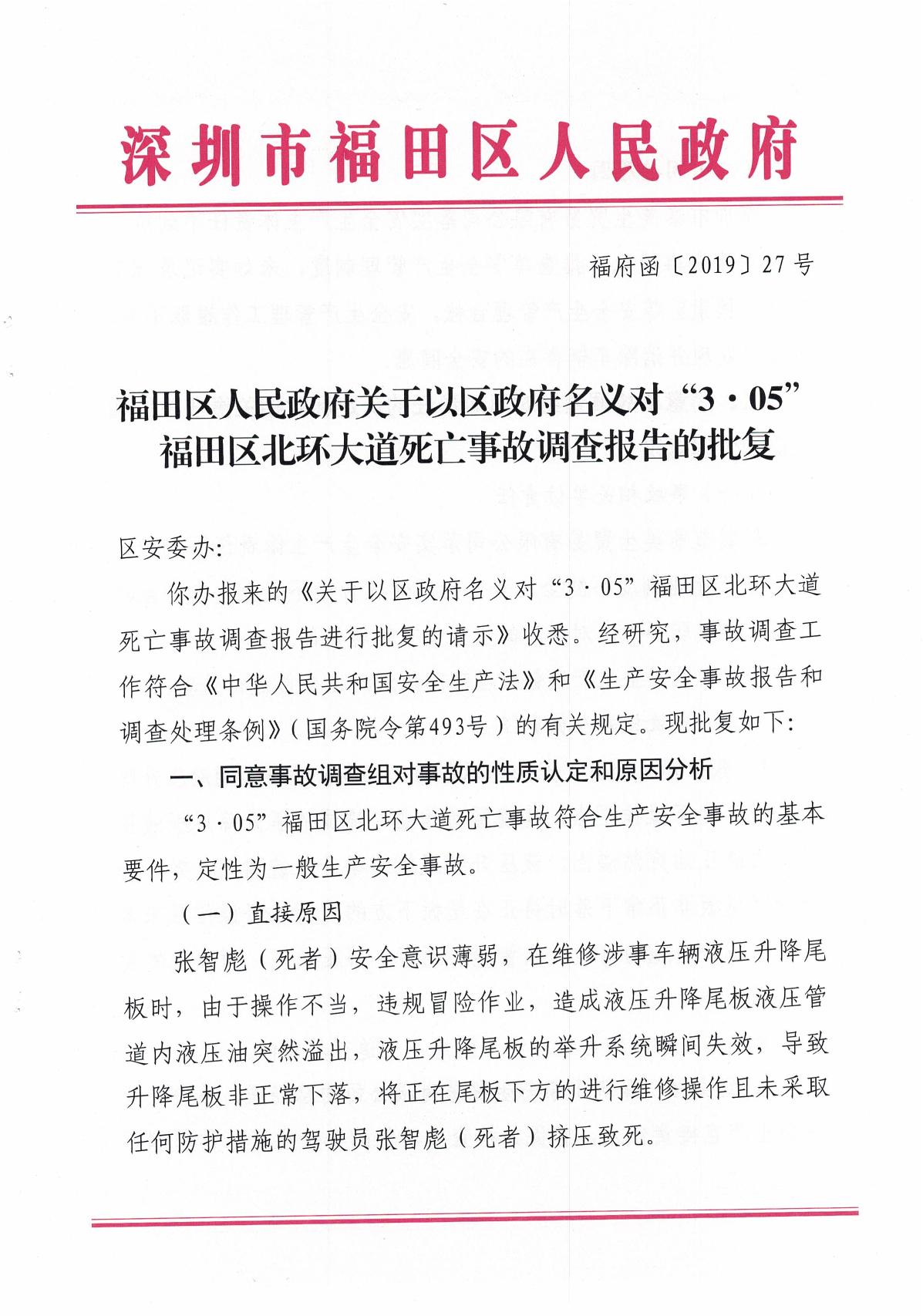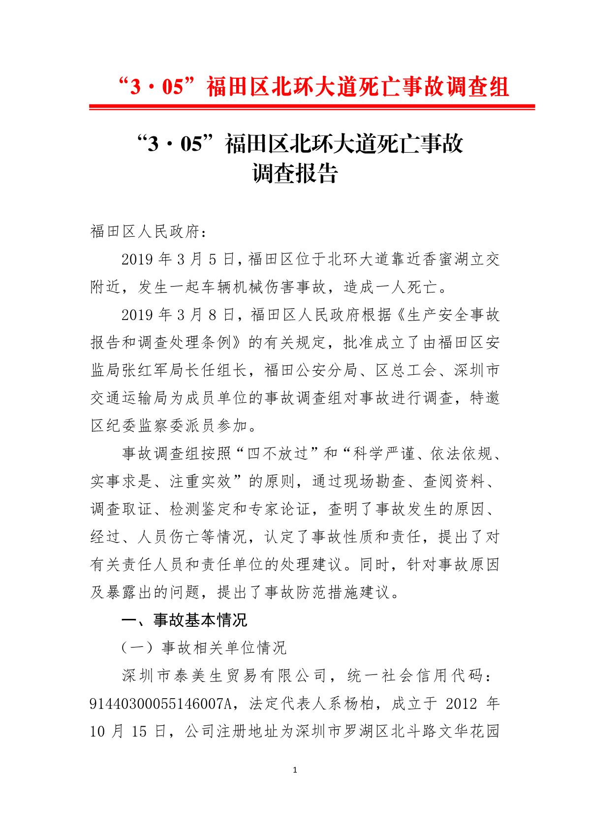 “3.05”福田區北環大道死亡事故調查報告