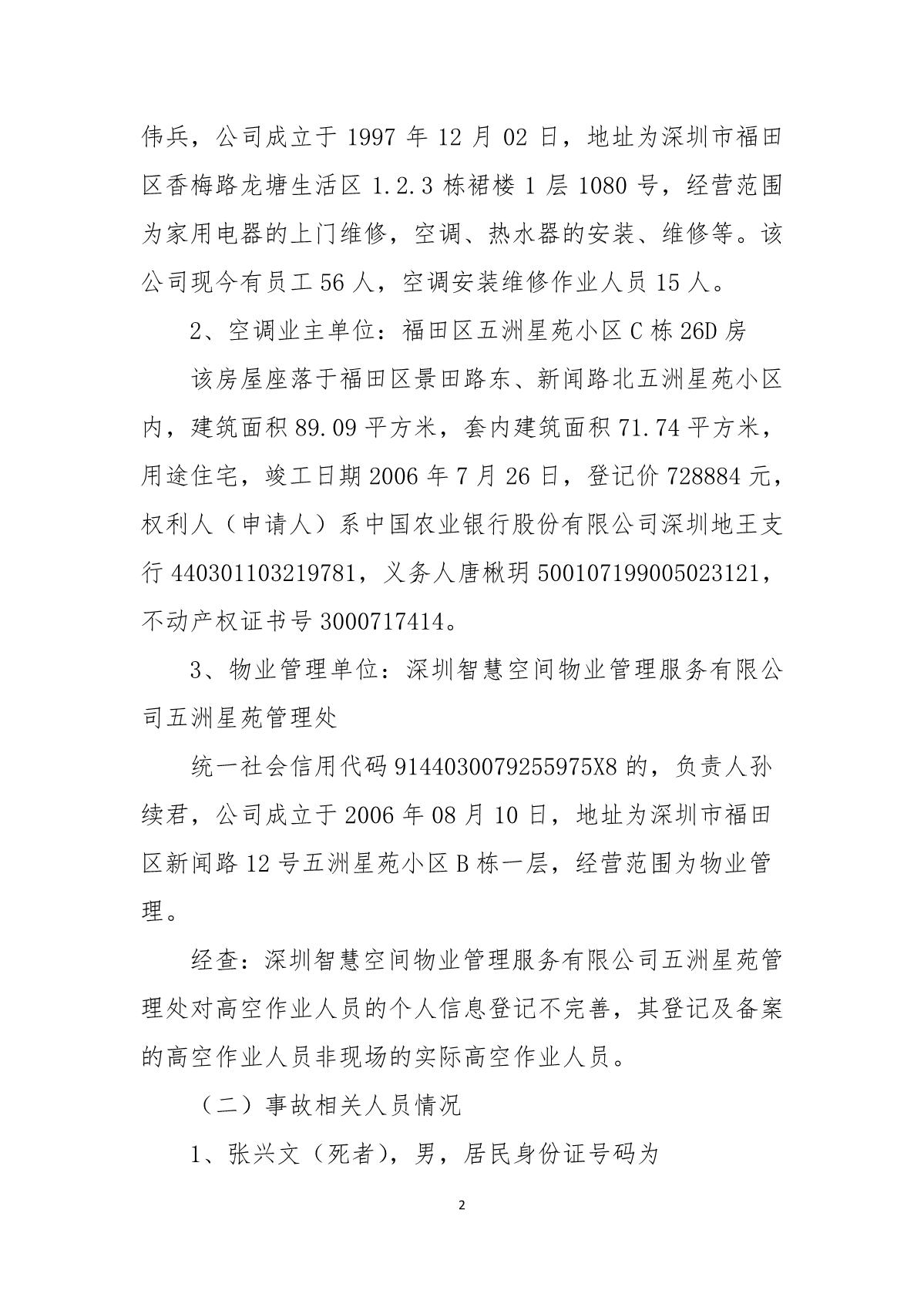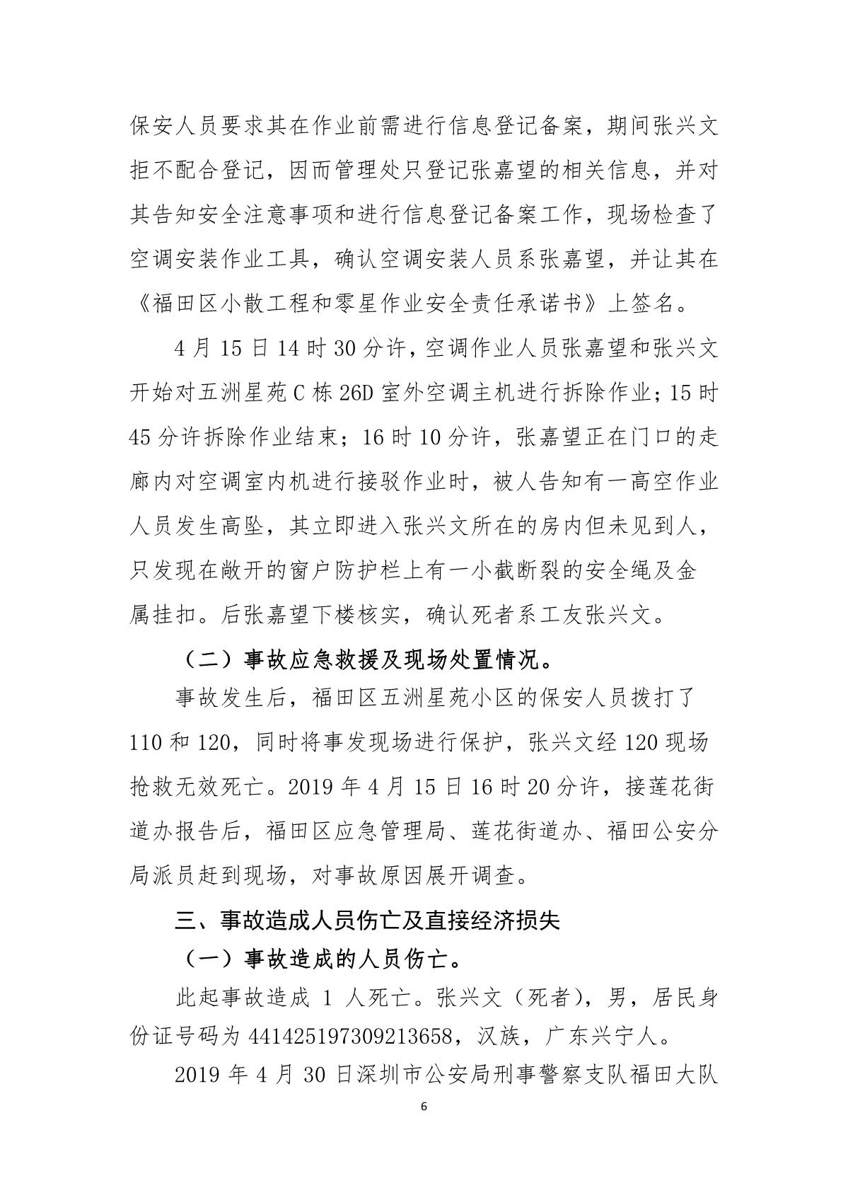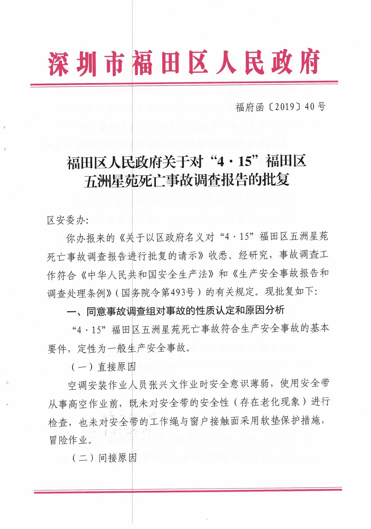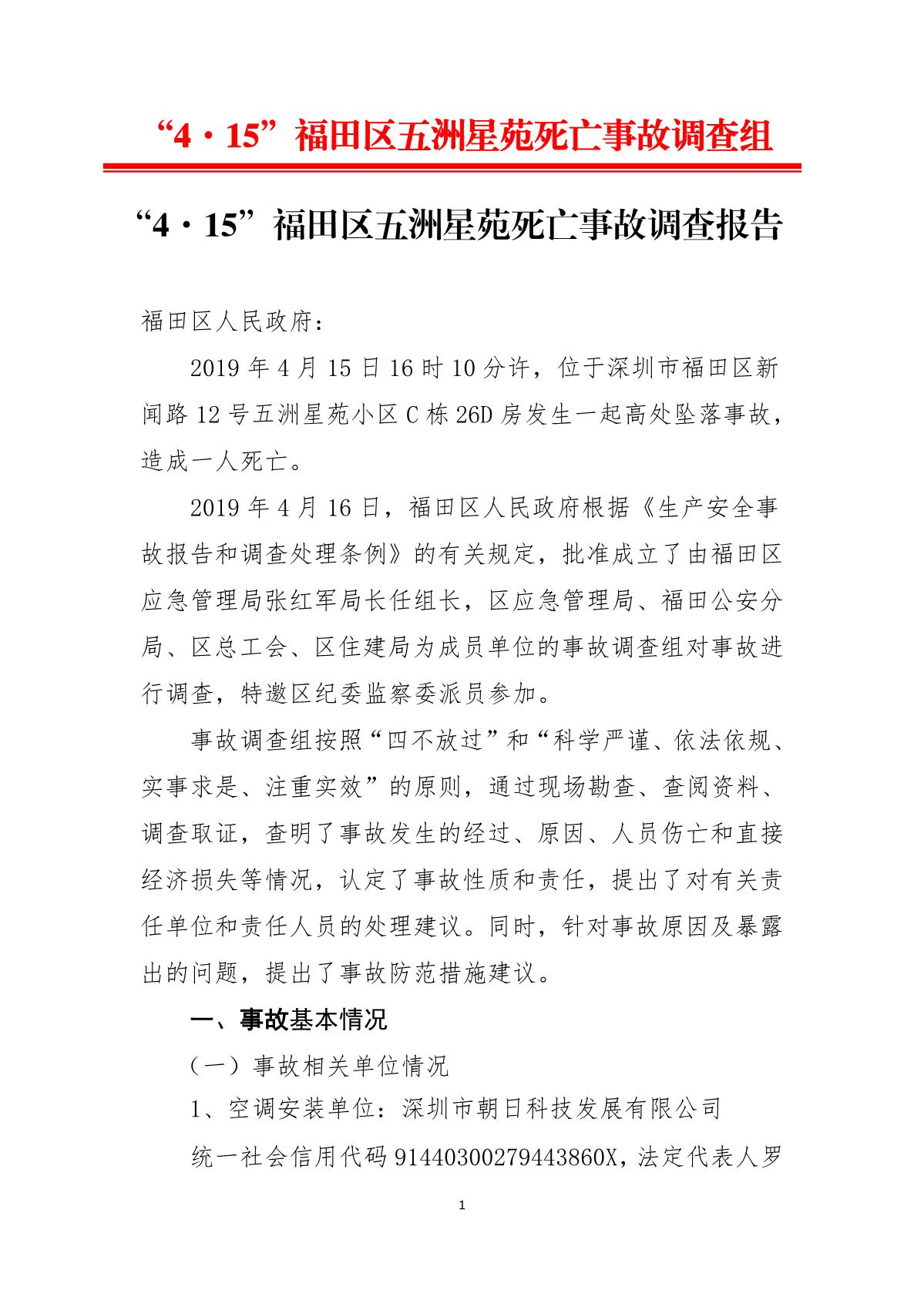 “4.15”福田區五洲星苑死亡事故調查報告